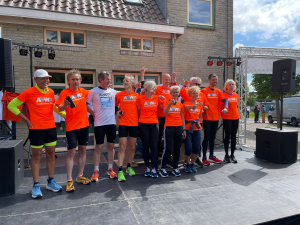 Vrijwel exact op schema bereikte het tweede team van AVW (nu ook met Barbara en Hans) iets voor 4 uur het Pynasplein waarop kort daarna de huldiging van alle 8 teams (ook 3x Thof, 2x Lely, Ruitenburg en RotaRunners) plaatsvond. Voor het eerst dus niet op het feestterrein van Sport en Spel en dat lijkt een blijvertje gezien de commentaren die na afloop te horen waren.